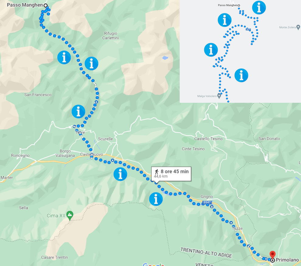 Oggi parto in solitaria da Primolano per raggiungere il Passo Manghen.