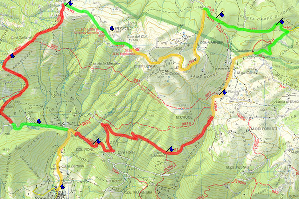 | Titolo | Partenza | | Testo | Partenza da Sonego alle 7:00 | | Link | | | Allegato | | | Altimetria | da 425 metri a 650 metri | | Distanza | 900 metri in linea d'aria, 1600 metri percorsi |