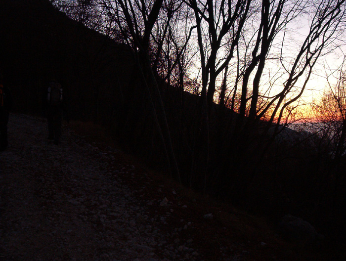 | Titolo | L'alba | | Testo | L’alba in questo periodo d’inverno è sempre spettacolare. | | Link | | | Allegato | | | Altimetria | da 650 metri a 960 metri | | Distanza | 1100 metri in linea d'aria, 2400 metri percorsi |
