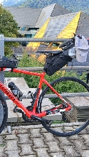 Infine nel borsello centrale avevo kit per assistenza bici più camera d’aria, documenti, telefono e qualcosa da mangiare.